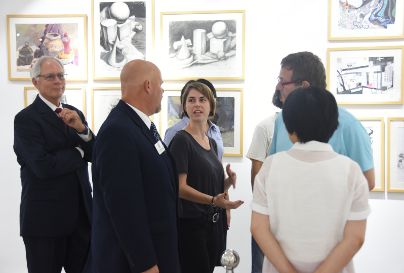 上海震旦教育集团张沈董事长致欢迎词,上海震旦职业学院陈力华校长和美国锡耶纳赫兹大学李·强森副校长各自介绍学校基本情况,双方就合作培养我校艺术设计专业学生展开了讨论,最后双方对合作协议内容达成共识、并确认美国锡耶纳赫兹大学承担的具体课程。美国锡耶纳赫兹大学李·强森副校长一行4人同时考察了我校画室、3D打印实训室等艺术实训室,参观了我校艺术专业学生的作品,还与我校艺术专业学生座谈,对我校学生的综合素质评价较高。