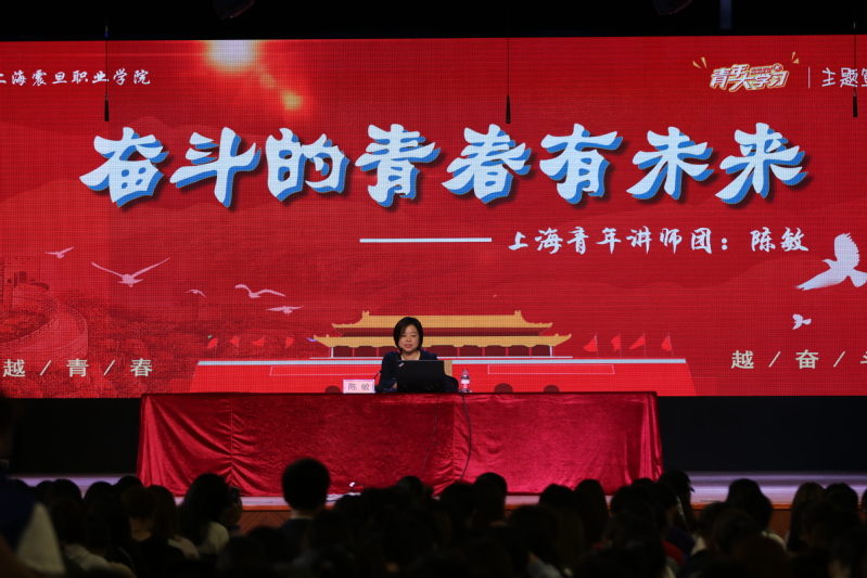 为把组织引导广大青年深入学习宣传贯彻习近平新时代中国特色社会主义思想和党的十九大精神持续引向深入,学习领会习近平总书记“7·2”重要讲话精神,切实抓好团的十八大精神学习宣传贯彻工作,推动新时代青年和共青团工作开创新局面、实现新发展,10月12日下午1点,我校团委在大礼堂举行了青年大学习首场宣讲活动,邀请上海青年讲师团成员,中国福利会少年宫党总支书记、常务副主任陈敏老师讲述《奋斗的青春有未来》这一主题。参与同学主要包括18级教育学院和18级机电工程学院团员青年和入团积极分子。