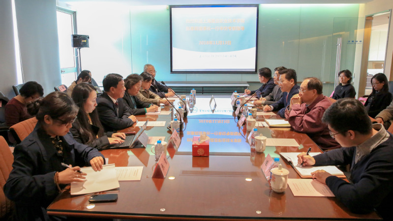 11月13日下午,震旦教育发展基金会理事长张惠莉带队赴上海外国语大学贤达经济人文学院调研交流,校长陈力华、副校长王纯玉、监事会秘书长曹世勋及有关部分负责人、各学院领导、专业主任等十一人随行。上外贤达学院董事长鲍贤嗣、副董事长陆朴鸣、校长朱永生、副校长罗玲芳及相关部门领导热情接待了访问团。