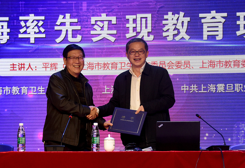 11月30日,学院邀请中共上海教育卫生委员会委员、上海教育委员会总督学平辉老师,来我校宣讲全国教育工作大会精神。震旦学院师生,集团及震旦中专等学校老师参加并聆听讲座。党委宣传部部长胡克文主持了讲座,并向平辉老师颁发了上海震旦学院思想政治教育特聘教授的聘书。