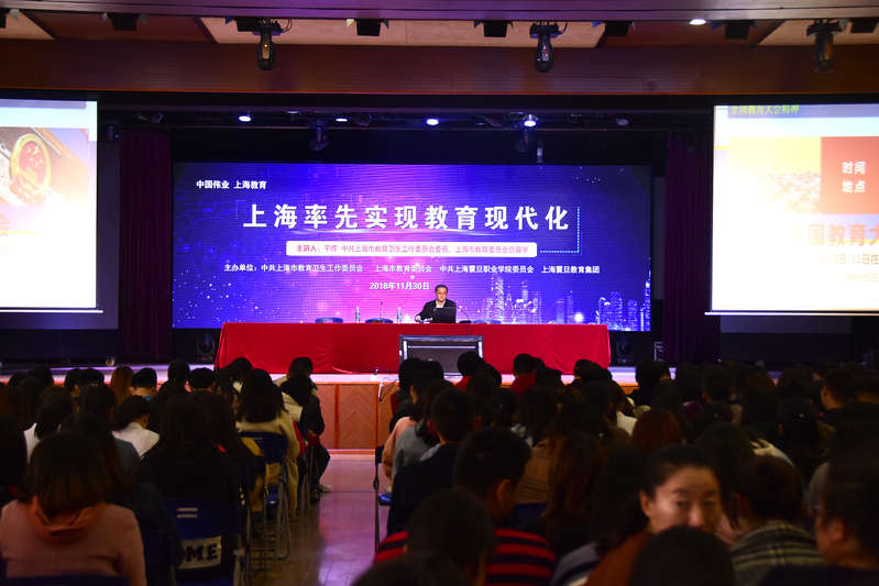 中共上海教育卫生委员会、上海教育委员会为贯彻宣传落实全国教育工作会议精神,组成讲师团到各高校巡讲。平辉老师是讲师团成员之一。本次讲座是我校贯彻落实全国教育工作会议,落实中共上海教育卫生委员会、上海教育委员会宣传全国教育工作会议精神宣讲活动的举措之一;也是我校《中国伟业》系列讲座之一。