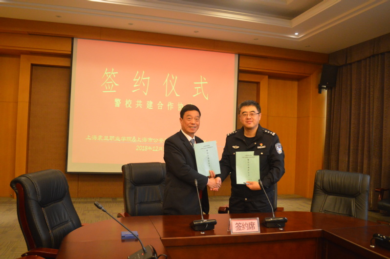 为进一步加强社会主义精神文明建设,贯彻落实普法教育工作,深入持久地开展群众性精神文明创建活动,增强警校团结,巩固和发展和谐警校关系,共同把未成年人培养成社会主义事业合格的建设者和接班人。2018年12月4日,上海市公安局宝山分局罗店派出所与我校警校共建签约仪式在国际会议中心举行。罗店派出所所长陆斌、教导员支华、警官蔡云明,我校陈力华校长、党委副书记夏臻、后保处处长孙兴强出席签约仪式。震旦学院各分学院领导、以及各职能处室负责同志参加了仪式。仪式由党委副书记夏臻主持。