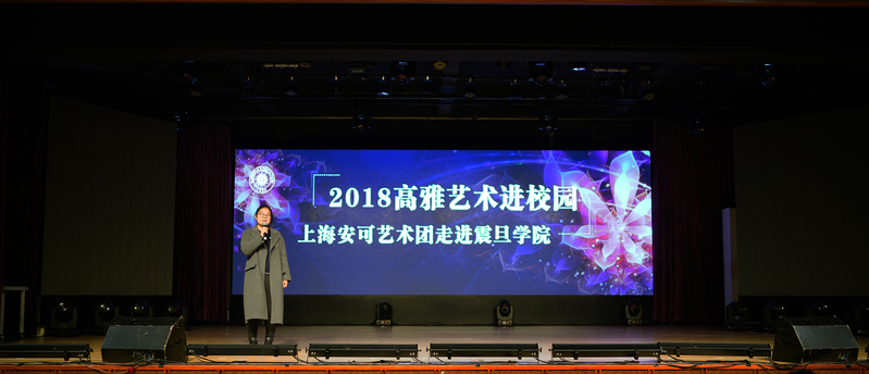 演出开始前,首先由我校校长陈力华教授对本次来到我校演出的上海安可艺术团全体演职人员表示诚挚的欢迎和衷心的感谢,他表示,“高雅艺术进校园”是一项可以提高在校大学生校园文化以及提升学生艺术修养的活动、让优秀的文化艺术作品温润学生的心灵”。