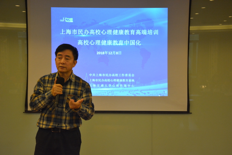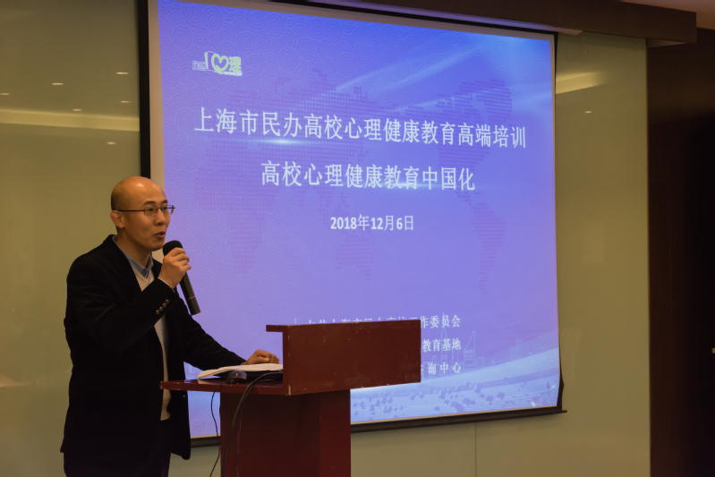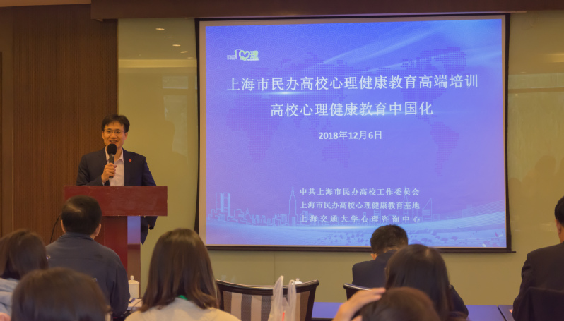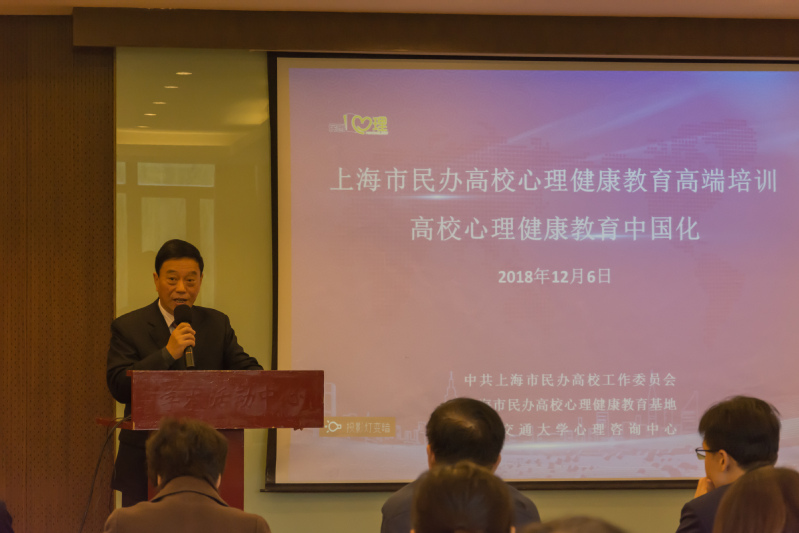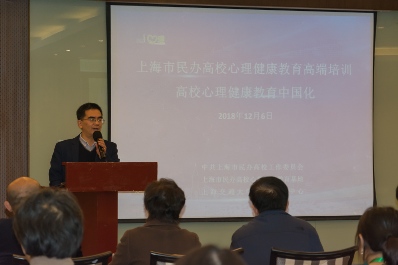 12月6日上午9:30,由上海市民办高校党工委、上海市民办高校心理健康教育基地、上海交通大学心理咨询中心联合主办的“心理健康教育中国化”研修班在上海交通大学闵行校区学术活动中心顺利开班。上海市民办高校党工委副书记王瑞杰,上海交通大学党委常委、副校长、学指委秘书长王伟明,上海交通大学学生处副处长、武装部副部长康健,上海交通大学心理咨询中心主任杨文圣,上海市民办高校心理健康教育基地负责人、上海震旦职业学院党委书记黄晞建,校长陈力华,副书记夏臻,学工部部长、心理健康教育中心主任毛燕静等领导专家出席了本次开班仪式。仪式由康健主持,来自上海13所民办高校的党政中层骨干、专兼职心理骨干教师等共38人参加了此次研修班。