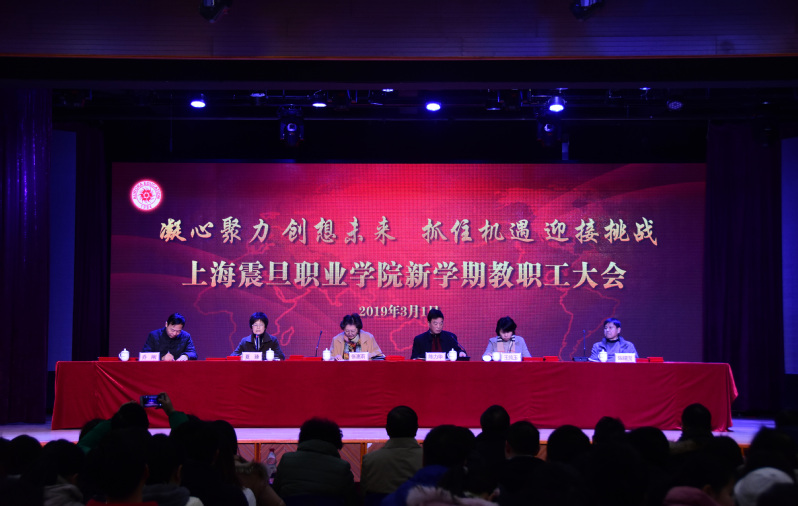 3月1日上午上海震旦职业学院新学期教职工大会在学院大礼堂召开,大会由夏臻副书记主持,全体教职工和兼职教师、震旦中专全体教师出席了大会。