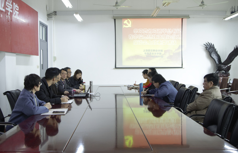2019年3月25日,上海震旦职业学院马克思主义学院全体思政教师集体学习贯彻习近平总书记在学校思想政治理论教师座谈会上的重要讲话精神,大家深受鼓舞,也深刻体会到了作为一名思政教师肩负的光荣而重大的责任。一致认为,要不辜负党的期望,努力工作,认真贯彻党的教育方针,落实立德树人根本任务,坚持教育为人民服务、为中国共产党治国理政服务,用新时代中国特色社会主义思想铸魂育人。与会同志踊跃发言,就思政教学改革、课堂模式创新和“五年一贯制”教改发表了各自的意见。大家统一了思想,坚定了信心,振奋了精心,决心不负党和人民重托,为全方位育人、全员育人,为推进教育现代化,为建设教育强国和推进学校的发展做出新的更大的贡献。