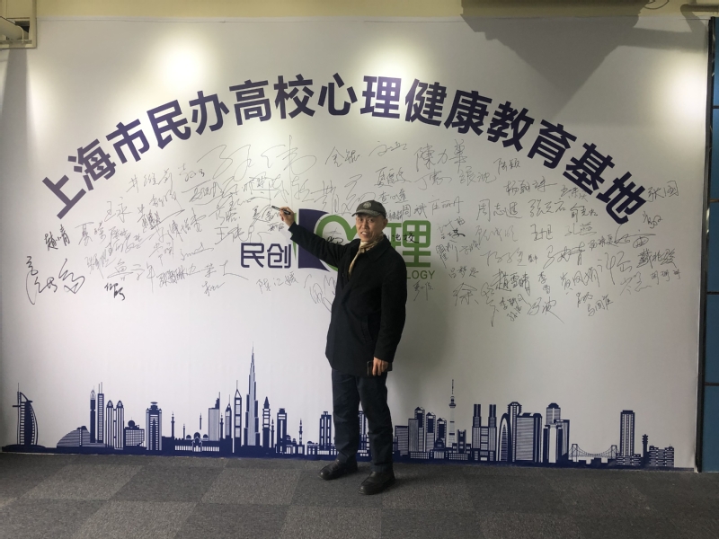 上海市学校高级心理咨询师赵小青老师、复旦大学心理研究中心主任孙时进老师、上海交通大学颜世富老师、上海交通大学仰颐老师先后在基地签名墙上签名留念。