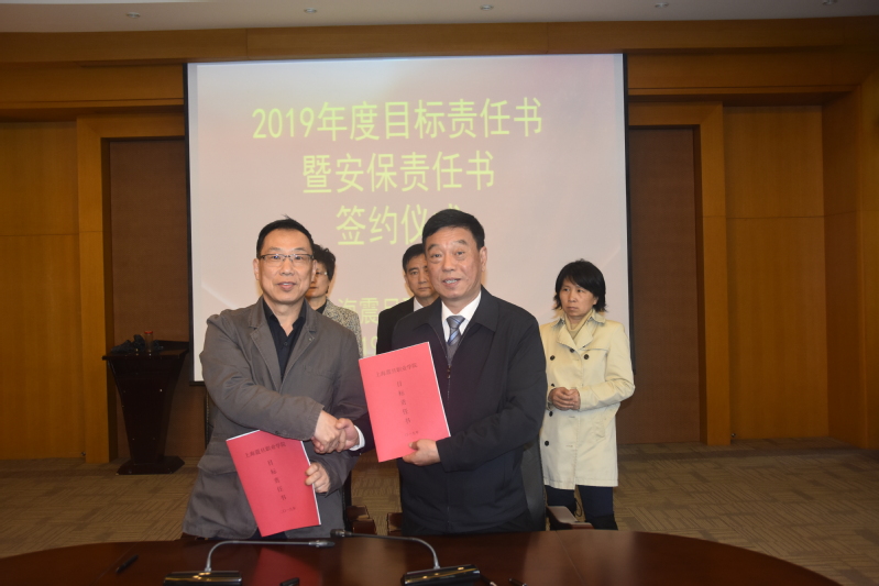 2019年4月8日,在我校体艺楼国际会议中心,举行了“2019年度目标责任书暨安保责任书签约仪式”。校长陈力华、党委书记黄晞建、党委副书记夏臻、副校长王纯玉等党政领导出席了本次签约仪式。人事处副处长钱毅主持签约仪式。