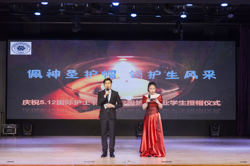 上海震旦职业学院公共卫生与护理学院于2019年5月10日下午12:30在大礼堂以“佩神圣护帽,领护生风采”为主题,举办了这次庆祝5.12国际护士节暨2017级护理专业学生授帽仪式。
