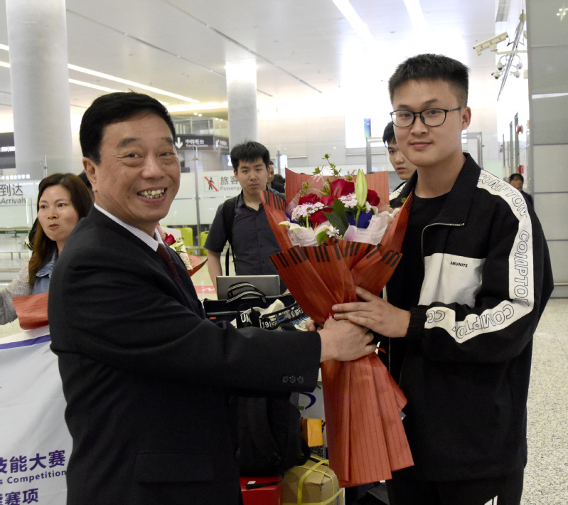 5月27日下午,我校获奖师生凯旋归来。校长陈力华、实践办主任叶素梅、机电工程学院副院长袁明、宣传部副部长金瑶等一行到机场迎接获奖师生。