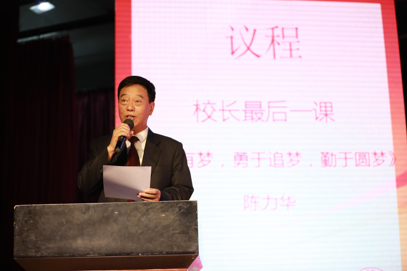 毕业季总少不了校长的殷殷期望。校长陈力华为全体2019届毕业生送上主题为“敢于有梦,勇于追梦,勤于圆梦”的“校长最后一课”。陈校长代表学校向全体毕业生提出希望,希望同学们“认真踏实做事、做有担当责任的人;既做追梦者,又做圆梦人”。陈校长深情地对全体毕业生说:“母校将永远是你们最温暖的精神家园!你们将永远成为母校最引以自豪的“梦中”牵挂!”