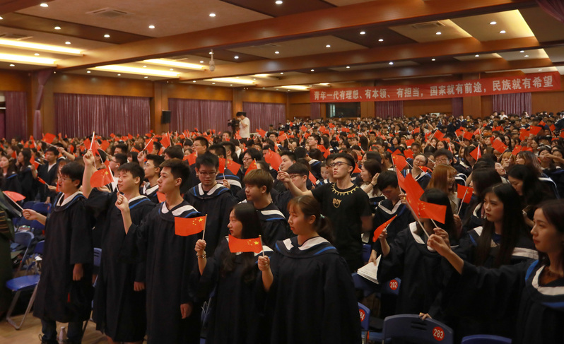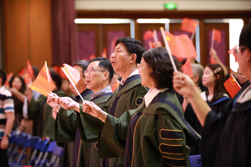 2019年正值新中国成立70周年、五四运动100周年之际,毕业典礼现场全体毕业生和教职工共同高唱《我和我的祖国》、《毕业歌》,挥动国旗为祖国献礼,为祖国祝福。毕业典礼圆满落幕。