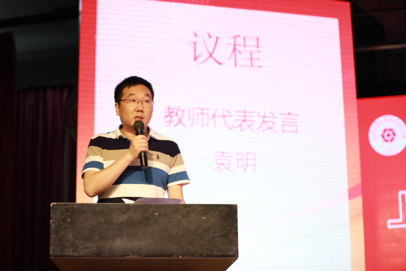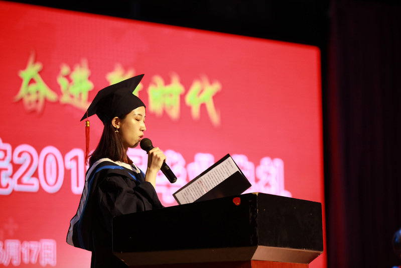 2019届毕业生们取得的傲人成绩,与我校每一位教师的付出是分不开的。机电工程学院副院长、市级精品课程带头人袁明老师代表我校全体教职工发言。作为计算机专业的袁老师提到在IT界著名的摩尔定律,大意是电脑性能每18个月会翻一番,而价格降为原来的一半,他希望每一位毕业生要时刻牢记,人生只有起点,没有终点,要有终生学习、终生反省和终生实践的能力。毕业并不代表青春的完结,只是意味着行为的收敛和责任的加重,同学们要不忘继续学习、完善自我,不负所学,在未来干出一番事业。