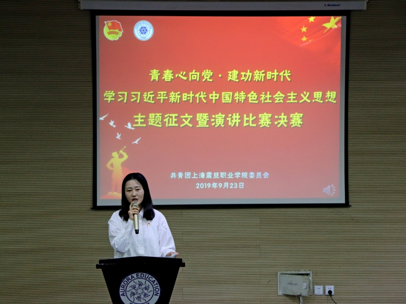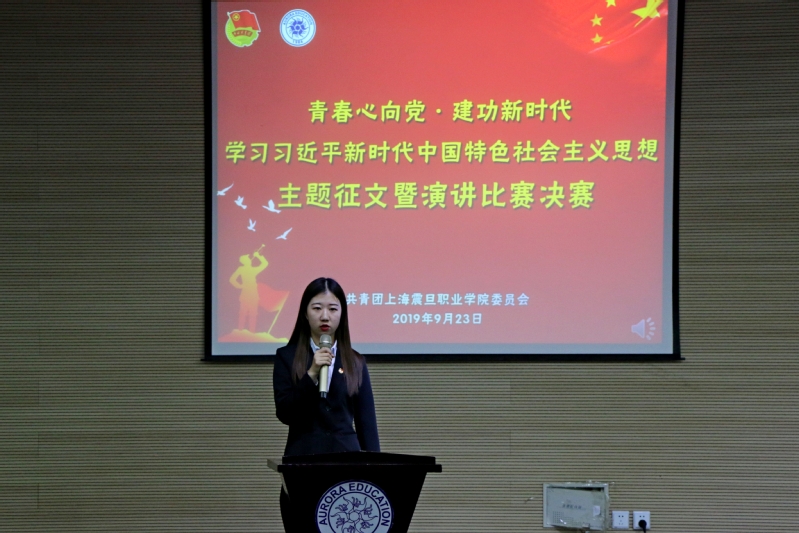 为隆重庆祝中华人民共和国成立70周年,深入学习贯彻习近平新时代中国特色社会主义思想,充分激发大学生的爱国热情,广泛凝聚青春力量。我校于2019年9月24日下午4点30分在体艺楼报告厅隆重举行“青春心向党·建功新时代”——上海震旦职业学院团员青年学习习近平新的代中国特色社会主义思想主题征文暨演讲比赛决赛。出席本次比赛的评委老师有:校党委副书记夏臻老师、校马克思主义学院副院长、思政部教学部主任鲁学军老师、校党委办公室主任张军胜老师、校团委书记曹晓莉老师、校团委副书记邵慧老师。