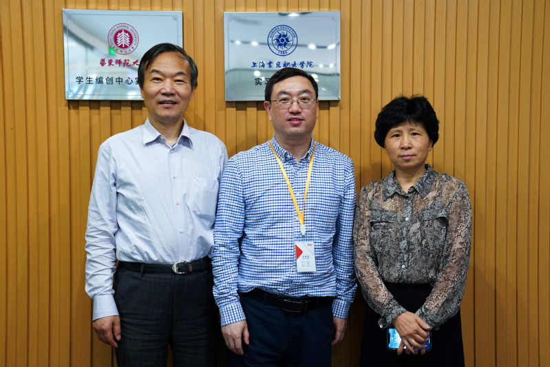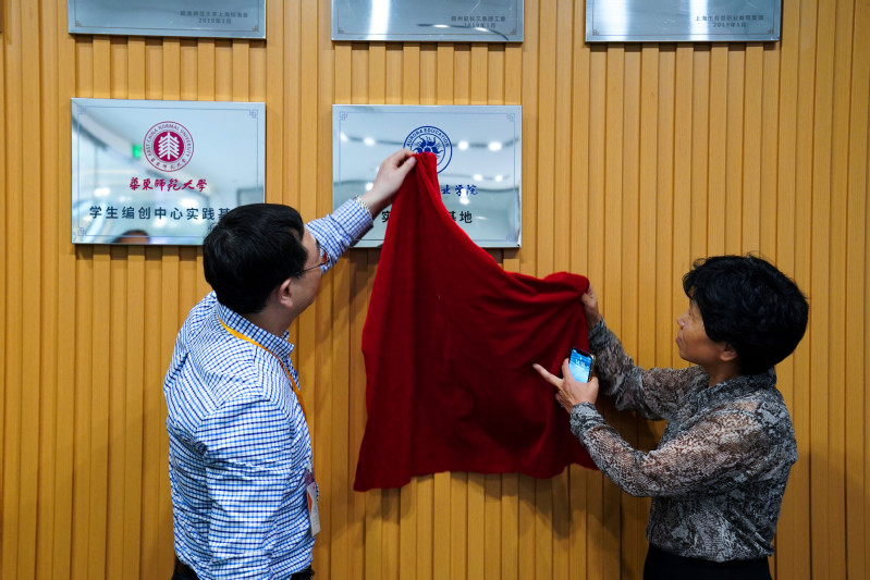 公司总经理邱宝林对上海震旦职业学院领导和老师的来访表示欢迎,他陪同王校长、乔校长一行参观了爱豆堡直播基地的直播间、演播室及后期制作等场地,随后共同为爱豆堡“上海震旦职业学院实践基地”揭牌。
