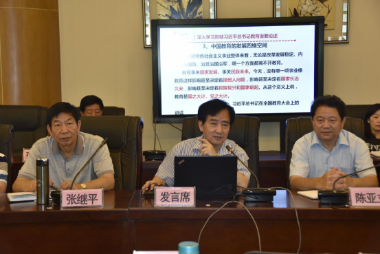 会上,黄晞建书记深入宣讲了习近平总书记教育重要论述,并从战略全局角度阐释了“教育始终联系中华民族伟大复兴”的重要意义,强调当今世界教育的基础性、先导性、全局性地位和作用,从教育内涵角度科学论述了教育改革发展的新理念新思想新观点,教师扎实学识、立德树人的使命担当,学生扎根人民、奉献国家的理想信念,并对党政负责干部提出了熟悉教育、关心教育、研究教育的要求。