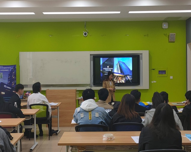 宣讲会现场气氛热烈,浦东绿地铂骊从酒店营收发展的角度介绍了酒店的概况、理念人才策略以及实习培训生的岗位,同时对于应聘者的具体要求和发展通道进行了简单的介绍,并结合自身经历跟学生们分享了工作的经验和心得。
