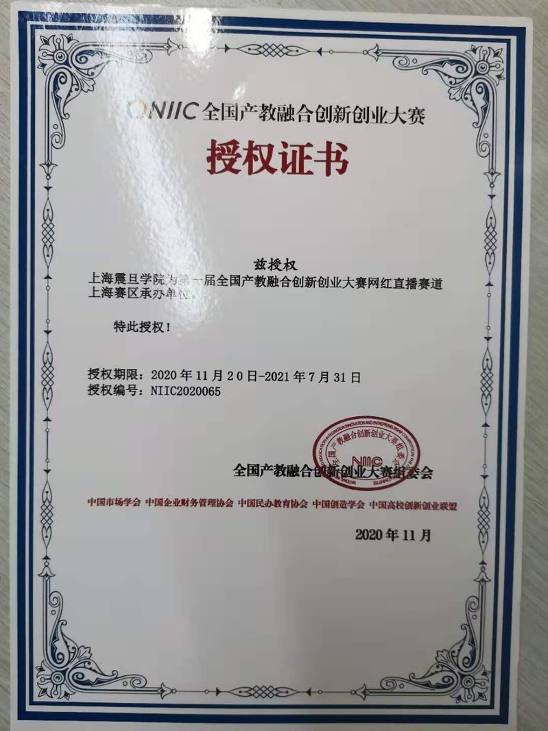 会议期间进行了赛道承办单位授牌仪式。我校预计将在2021年承办上海“第一届全国产教融合创新创业大赛网红直播赛道”比赛。