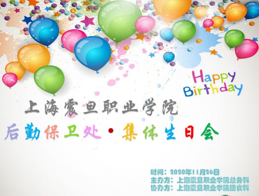 11月26日下午,后勤保卫处工会小组举办了2020年度后勤保卫处工会小组集体生日活动。后勤保卫处副处长俞老师发表了热情洋溢的致辞,高度肯定了后勤保卫处每一位员工在2020年的付出和努力,真诚的感谢每一位后勤保卫处的员工。伴随着熟悉的生日歌,总务处年纪最长的顾海军老师吹灭蛋糕蜡烛、许下心愿期待震旦明天会更好。职工们高兴地团聚在一起,分享学校工会对后勤员工的关心。此次活动使同事关系更加融洽,增进了同事间的友谊,增强了教职工的凝聚力和向心力,让震旦校园充满和谐和欢乐。