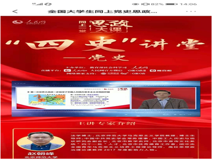 根据部署,学校学工部门组织学生“四史”学习教育有序开展。各学院党总支高度重视、认真组织、积极引领学生在以党史教育为重点的“四史”教育中,学习了解掌握党史知识,思考领悟把握党的一百年历史中贯穿的大逻辑、大道理、大趋势,自觉传承红色基因,努力做到“学史明理、学史增信、学史崇德、学史力行”,坚定对马克思主义的信仰、对中国特色社会主义的信念、对中华民族伟大复兴中国梦的信心,培根铸魂,践行社会主义核心价值观,努力培养德智体美劳全面发展的社会主义建设者和接班人。