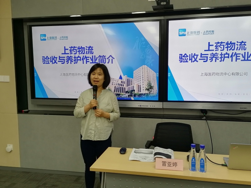 随后,上药控股物流公司冒亚婷老师通过同学互动、短视频和ppt等形式为同学们讲解了上药物流验收和上药养护作业两大板块内容。