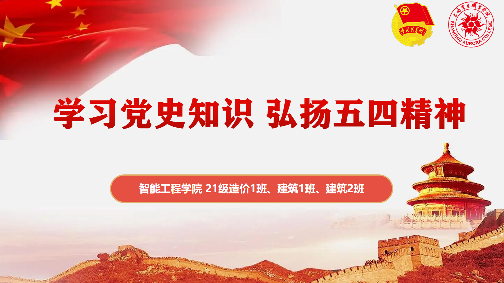 2022年5月4日13:00,智能工程学院21级造价1班、建筑1班和建筑2班开展了“播撒心灵阳光,呵护青春旅程”党史学习主题班会。活动共分为学习党史知识、弘扬和学习党史知识、观看影片《笃定》《奋斗者!正青春》并分享感悟、趣味答题环节等四个部分。