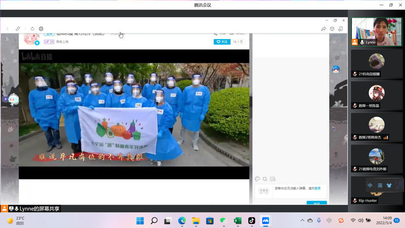 5月4日下午,20护理1、2、3班召开了以“传承五四精神,凝聚青春力量”为主题的线上班会活动,辅导员赵梦雪通过照片向同学们展示了校园封控期间和上海疫情防控阶段一批优秀青年学子冲锋在前,奔赴在核酸检测、搬运物资、防疫宣传等抗疫一线的事迹,生动诠释了新时代青年学生的责任与担当。最后志愿者分享了他们在志愿服务过程中的故事。