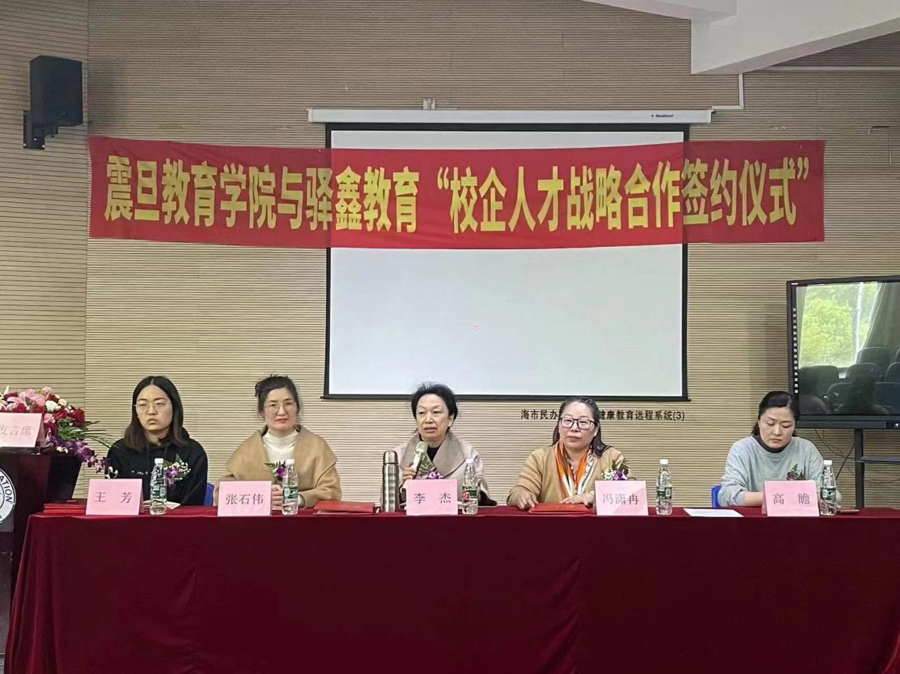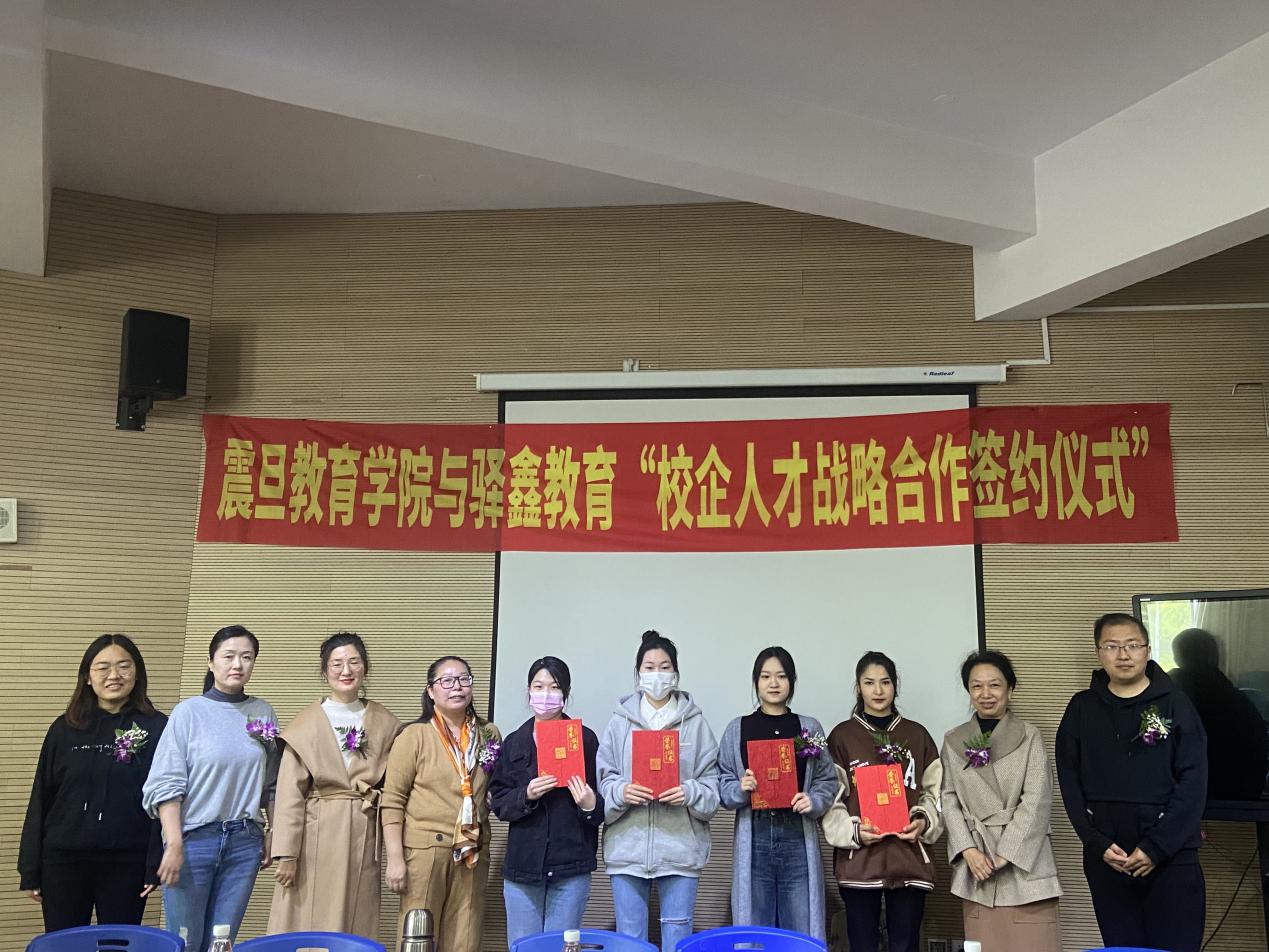 2023年4月24日,上海震旦职业学院教育学院与驿鑫教育开展了“校企人才战略合作签约仪式”暨见习优秀学员颁奖仪式。教育学院院长李杰、副院长张石伟、副院长高瞻、党总支副书记王芳以及驿鑫教育冯潇冉老师出席本次活动。活动由张石伟主持。