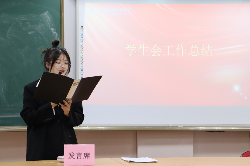 接着,学生会执行主席卢巡芳同学对学生会过去一年的工作进行总结,并阐述了下一年学生会工作的目标与任务。会议审议通过了《上海震旦职业学院教育学院第七届学生会工作报告》。