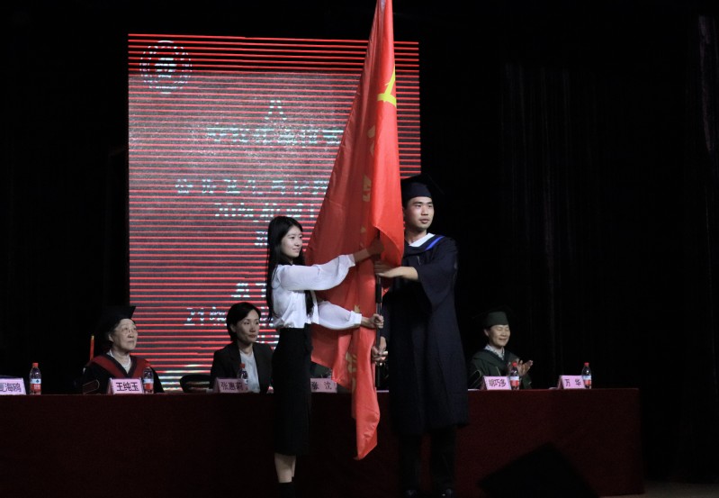 会上,还举行了校旗交接仪式,在校生代表、教育学院学前21班胡菁菁同学,从毕业生代表、公共卫生与护理学院20护理1班蒋顺同学手中郑重接过了校旗,让震旦精神代代传承!