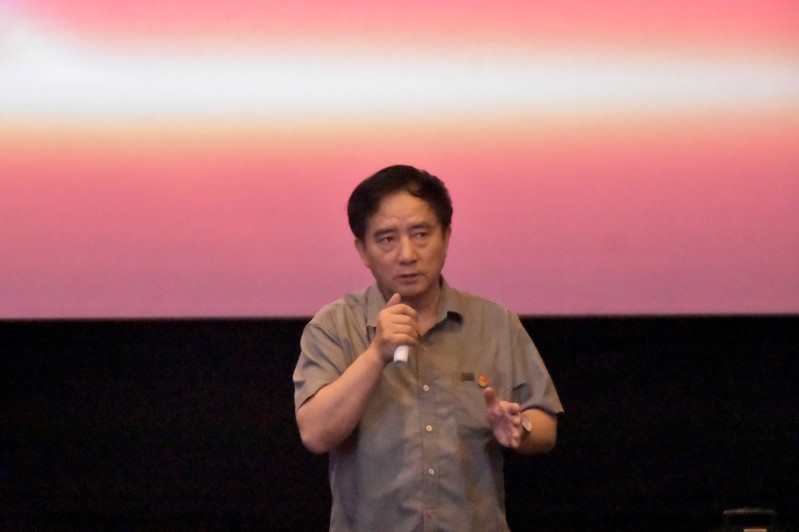 震旦职业学院党委书记黄晞建讲话。他总结了过去一年学校党委在推进主题教育、课程思政建设、基层党建方面取得的成效。