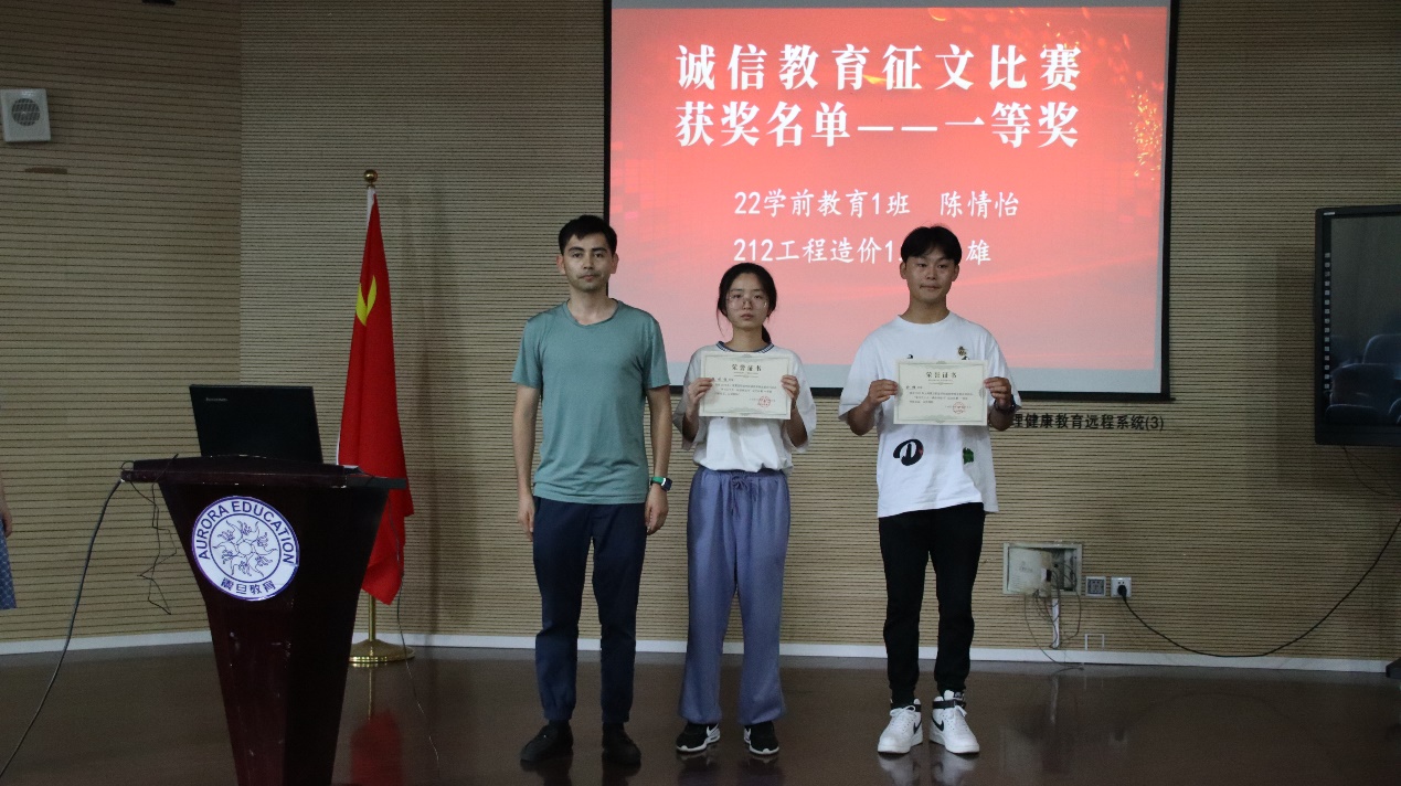 通过学习二十大的报告内容,以诚信为主题,同学们用朴素真挚的语言表达自己对党和国家的感恩,对自立自强、诚实守信的理解,更加励志成为诚实守信、感恩怀德、勇于担当的时代新青年。经过评委老师的评选,最终评出一等奖2名,二等奖4名,三等奖6名。