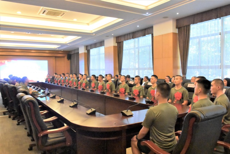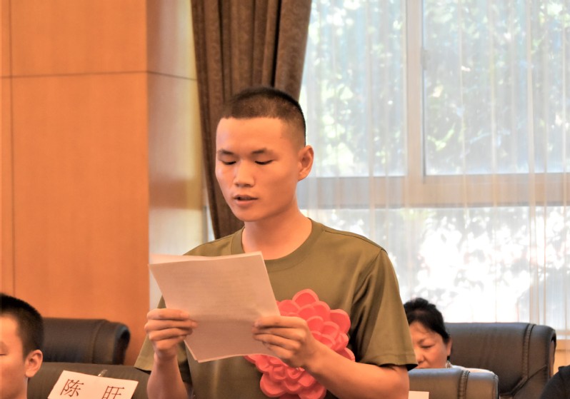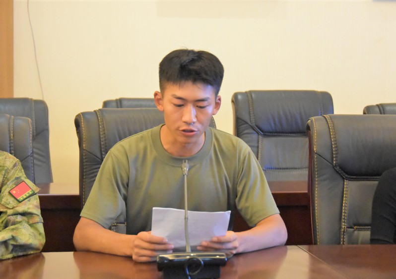 老兵代表王家宝向新兵们分享了自己的军旅历程,鼓励他们要积极展现震旦青年的精神风貌,牢固树立热爱祖国、献身国防的思想觉悟,积极主动进行军政学习和训练。