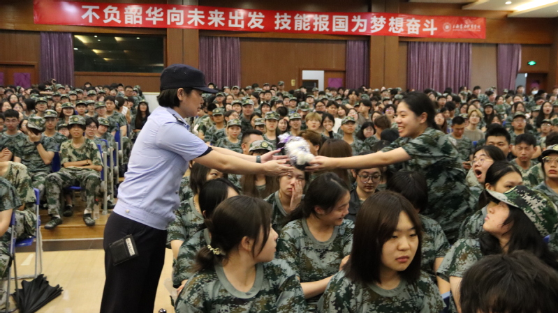 高境镇强制戒毒所的施辰辰警官分析了当前我国的禁毒形势,讲解了吸食毒品的危害,教会同学们如何有效防毒识毒,并通报了相关的案例、数据及中国法律对吸食毒品的处罚。施辰辰警官号召广大学生做文化交流的传播者,做绿色无毒的践行者,做禁毒防艾的宣传者,并现场向同学们发放了禁毒宣传资料1000余份。新生们纷纷表示,将绝不沾染毒品、珍惜青春年华、努力学习知识,用技能报效祖国,为实现中华民族伟大复兴的中国梦贡献力量。