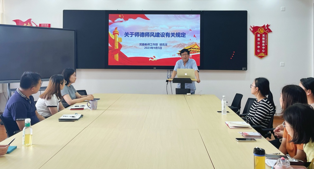 此外,在培训期间,学校人事处和党委教师工作部的负责人也分别对新教职员做了师德师风教育,并向新教师介绍了学校给予教师职业发展的相关政策和制度。