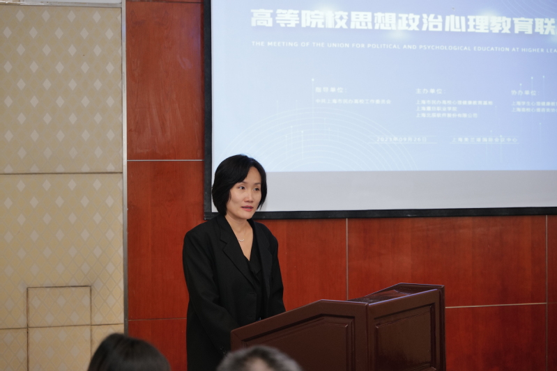 上海震旦职业学院董事长张沈致欢迎辞。她表示,这次会议的召开,既是深入学习贯彻习近平新时代中国特色社会主义思想和党的二十大精神,全面落实全国高校思想政治工作会议和心理健康教育工作推进会要求的积极回应,也是我们主动深入开展研究、加强交流合作,推动高校思政建设走深走实的积极探索。作为震旦职业学院的举办者,相信在上海市教卫党委、市民办高校党工委的指导下,在全国各兄弟院校的大力支持和通力合作下,一定能做好“高等院校思想政治心理教育联盟”平台的筹建工作,共享先进经验和成果。