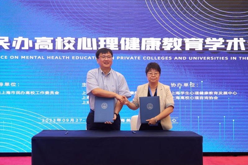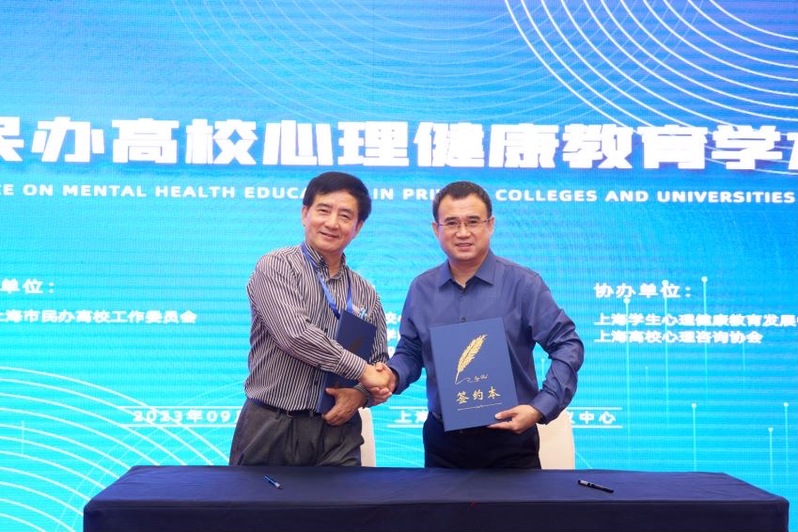 心理健康教育社会协同签约仪式顺利进行。上海市民办高校心理健康教育基地与上海北辰软件股份有限公司进行了校企合作签约。上海杉达学院与上海精神卫生中心进行了校医合作签约。