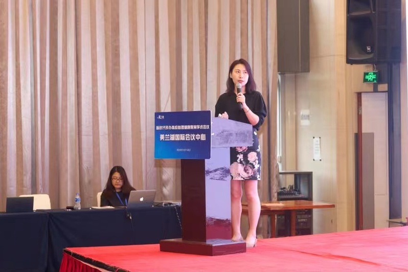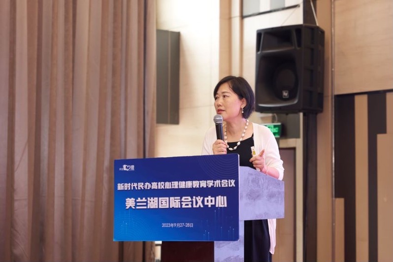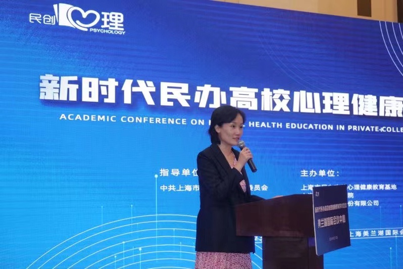 仪式后,上海市精神卫生中心医务部姚培芬主任作为心理健康教育社会协同代表单位进行发言,她指出,在与高校的医教协同工作中,上海市精神卫生中心坚持为大学生提供精神卫生服务,努力构建学校、医院、社会、家庭“多位一体化”的机制合作。