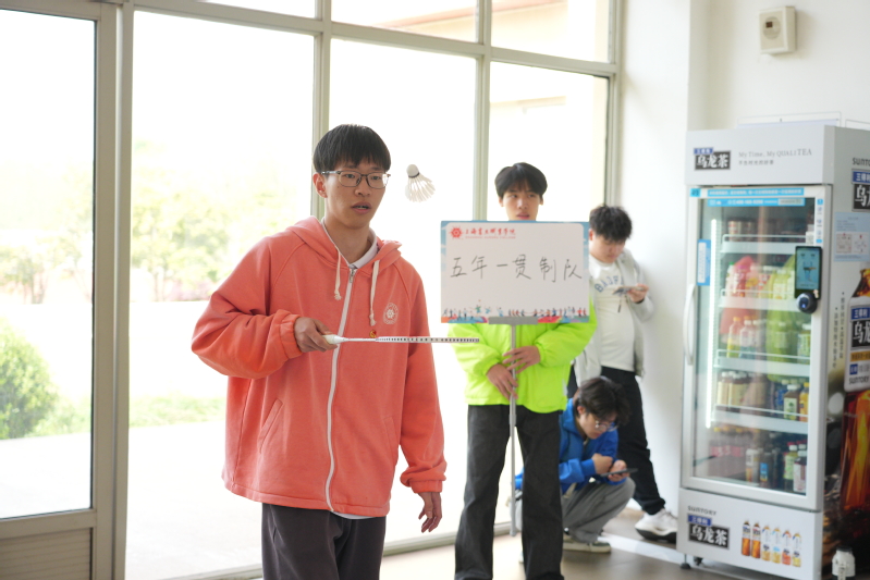 体艺楼大厅内,趣味羽毛球比赛正在上演“颠球挑战”,选手们专注投入,小小的羽毛球在球拍间轻盈跳跃,每一次稳定的颠球都是耐心与技巧的比拼。