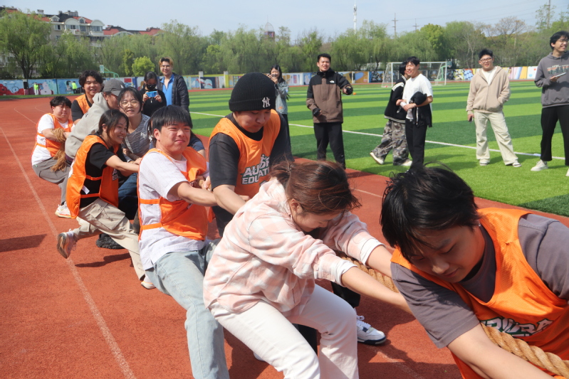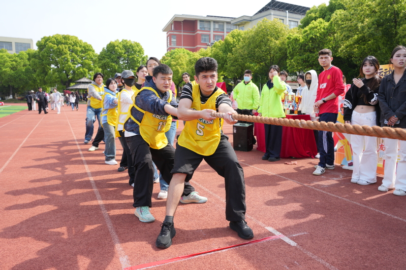 操场跑道旁,师生拔河比赛将现场氛围推向高潮。随着裁判哨声响起,参赛队员们紧握长绳、齐心协力,现场师生的加油声、呐喊声此起彼伏,师生并肩作战,在团队协作中拉近了彼此的距离,展现了师生同心、勇争先锋的热血与担当。