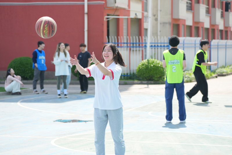 室外篮球场上,三分球投篮比赛紧张刺激。选手们屏息凝神、瞄准篮筐,一道道优美的弧线划出青春的轨迹,每一次进球都引来现场阵阵欢呼。