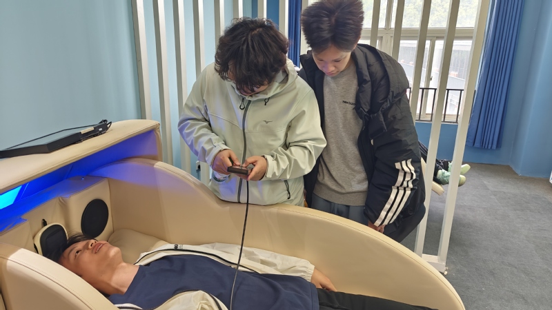 随后,同学们在陈萍老师的带领下,沉浸式体验基地特色心理功能区域。在星空房间内,温馨柔和的星空光影、舒缓治愈的背景音乐,营造出放松静谧的氛围,同学们卸下学习与生活的压力,感受心灵的平静与舒缓,实现情绪的有效释放与自我疗愈;在勇敢者游戏环节,大家通过团队协作、自我挑战类心理游戏,突破心理舒适区,锻炼抗压能力与团队沟通能力,在趣味互动中直面内心胆怯,收获勇气与自信;走进迈克房,同学们直观感受科学化、个性化心理辅导的魅力,进一步了解专业心理干预的流程与作用。