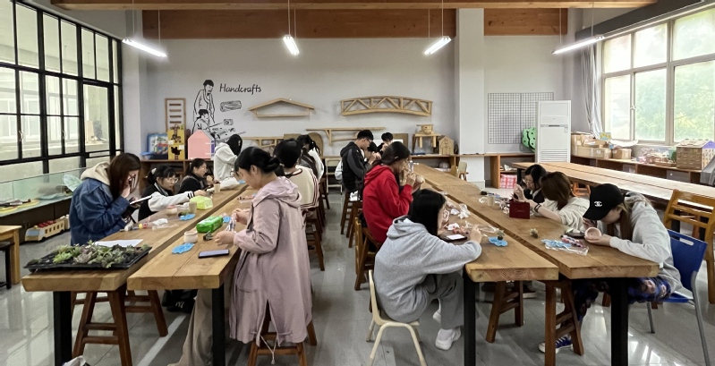 静心过后,同学们依次挑选心仪的多肉植株,开启专属治愈之旅。在花盆彩绘环节,大家静下心来执笔创作,用色彩装点花盆,在绘画创作中沉浸自我、舒缓心绪。种植环节里,大家细心填土、栽种多肉,亲手完成一盆盆独一无二的绿植作品。
